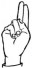 На ћирилици написано КАЋА РИЧЕВАЦ састоји се из 11 слова [?]. Исписано ћириличном једноручном азбуком за глувонеме: